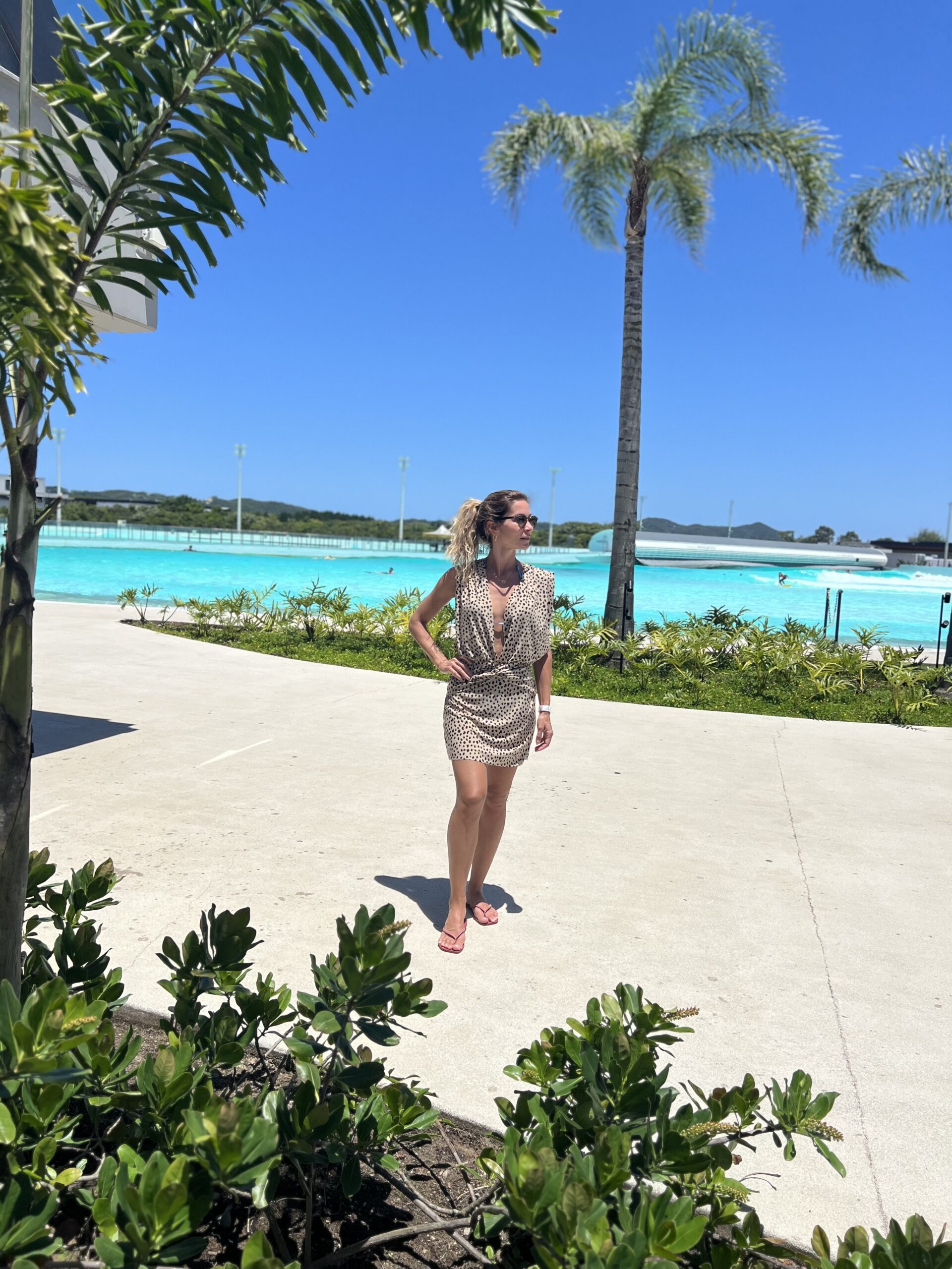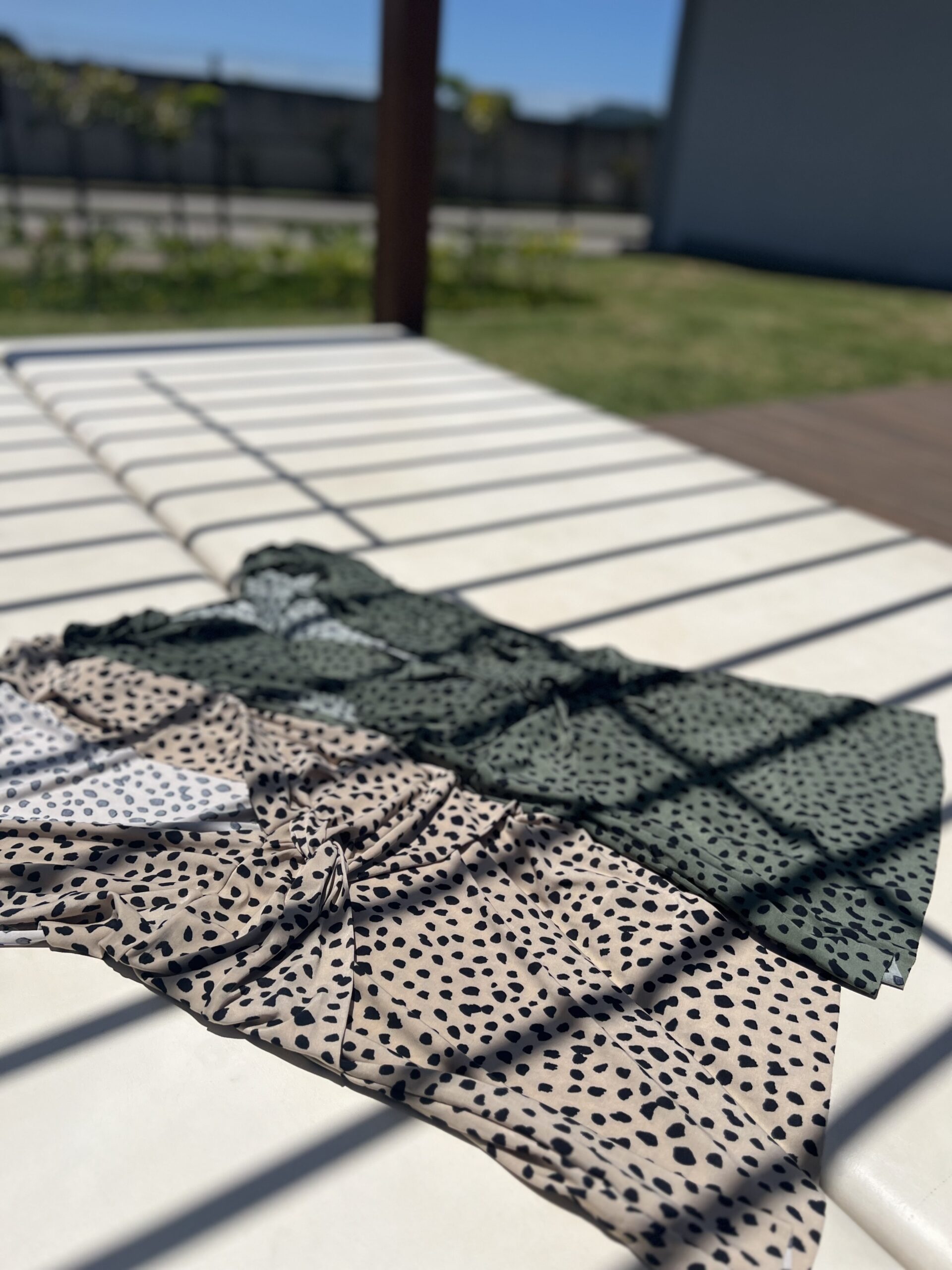 Saída de praia curta com decote profundo confeccionada em jérsei super leve e maleável